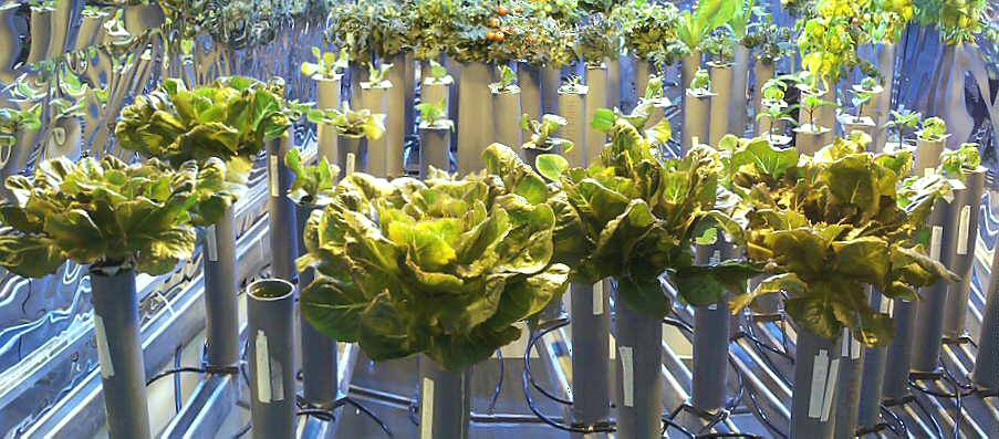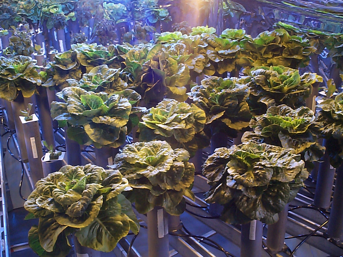 Interior view of Test Bed 2 showing mature romaine lettuce of 140 to 160 grams.